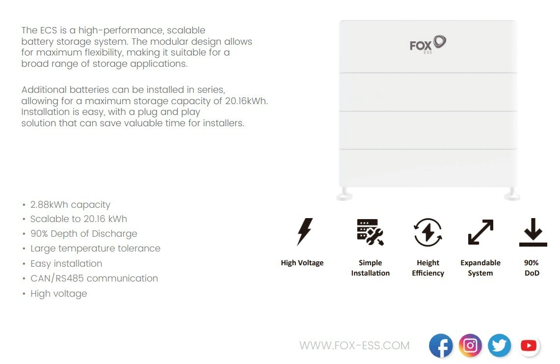 Fox Energy Cube HV ECS2900 V2 2.88kWh Slave Battery Connector Type A