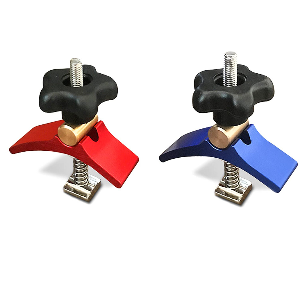 2pcs T-track hold down clamps aluminum alloy compatible with 3018 CNC router machines, 3018-SE V2 (Red & Blue)