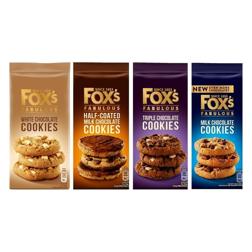 Fox's Fabulous cookies, Four Luxury Flavours of Milk, Triple, Half-Coated & White Chocolate Biscuits for special Occasions, Supreme Gift to share with