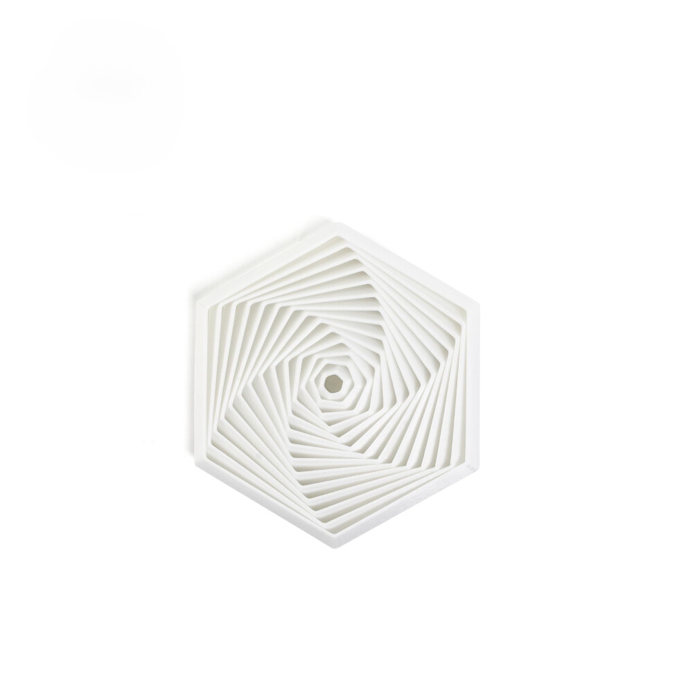 Hexagon Decor 7cm White 3D Printed Ornament with Intricate Fractal Design for Modern Desk Display