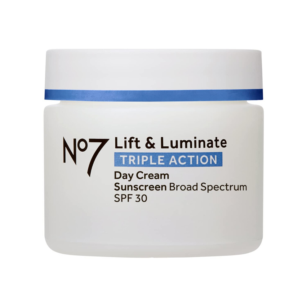 No7 Lift & Luminate Triple Action Fragrance Free Day Cream SPF 30 - Broad Spectrum Anti Aging Face Cream - Hydrating Hibiscus Peptides & Hyaluron