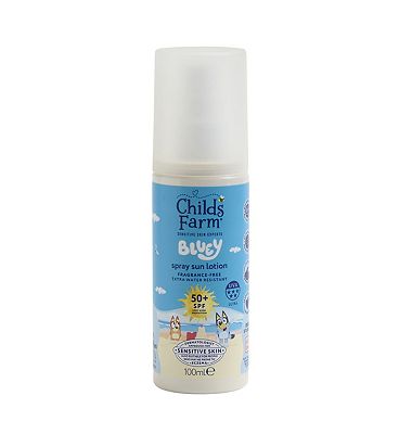 Childs Farm Bluey SPF 50+ Sun Lotion Spray Fragrance Free Sunscreen For Kids & Sensitive Skin 100ml