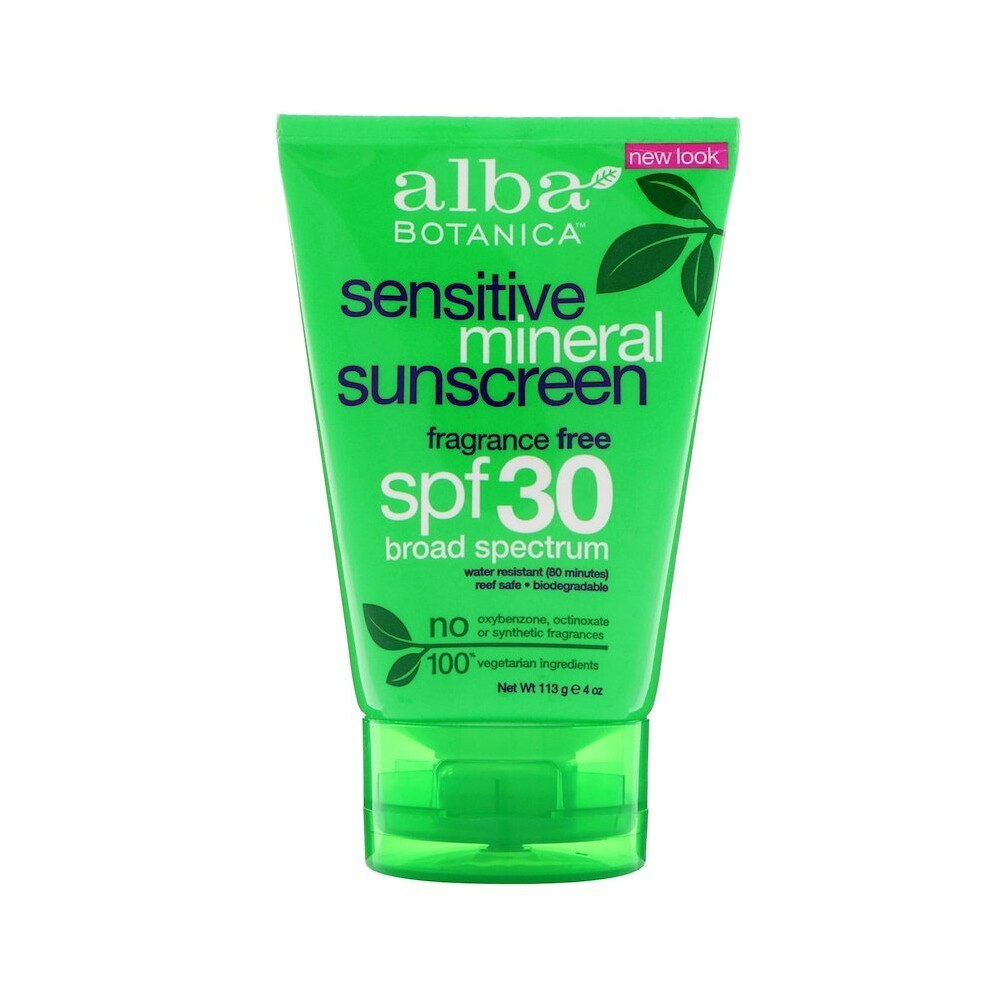 Alba Botanica, Mineral Sunscreen, Sensitive, Fragrance Free, SPF 30, 113g