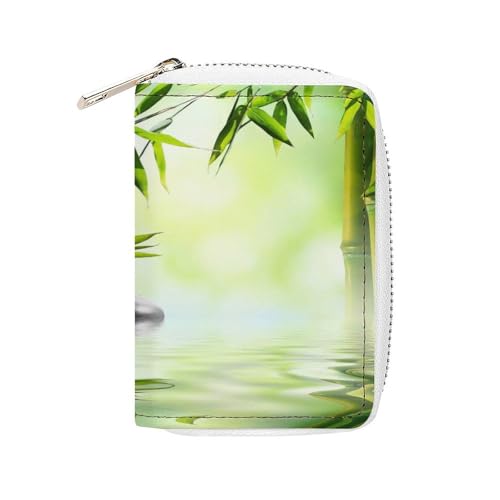 Women Leather Coin wallet, Key Change Organizer Zipper Card Holder Purse Clutch Pouch Pocket 4.5x3.15 in Print Spa Massage Zen Stone Frangipani Flower Green Pool