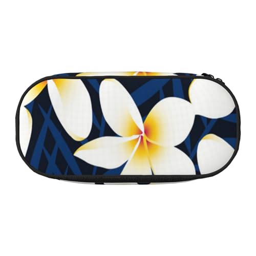 HDTVTV Beautiful White Frangipani Wake Plumeria Flowers Pencil Pouch Pen Case Portable Pencil Bag with Zipper Cosmetic Pouch Bag
