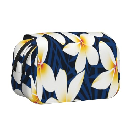 YXDVPALNE Print Tropical White Frangipani Plumeria Flower Double Clamshell Pen Case Portable Pencil Pouch with Zipper