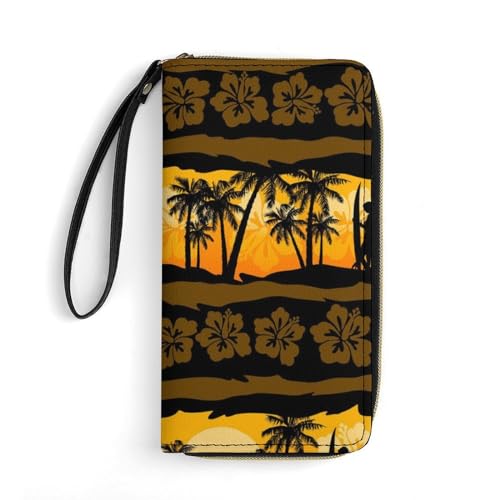 Clutch Wallet Tropical Frangipani with Palms Sunrise Handbags RFID Blocking Women's Wallets Artistic Genuine Leather Wallets for Daughter, Teens, Evening Party