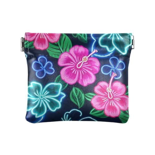 miaozhen Summer Neon Hibiscus Frangipani Flower PU Leather Change Purse Convenient Change Purse with Clasp for Ladies Handbag para monedas, Summer neon Hibiscus frangipani flower, One Size