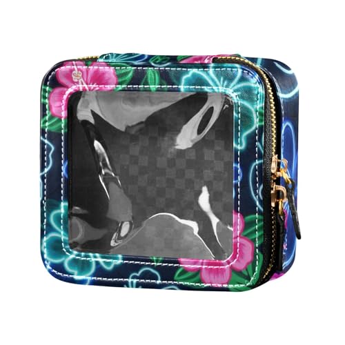 Summer Neon Hibiscus Frangipani Flower Waterproof Clear Makeup Bag Toiletry Bag Mini Makeup Containers for Flying