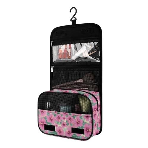 sanluoli Summer Neon Hibiscus Frangipani Flower hangingarge hanging travel toiletry bag with hook, designer compact bag for toiletries for traveling women cruises estuche de maquillaje para mujer