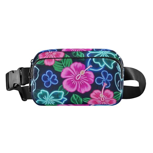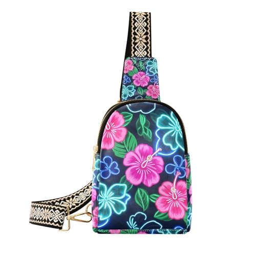 miaozhen Trendy Summer Neon Hibiscus Frangipani Flower travel fanny pack lightweight sling bag for women for hiking, Summer Neon Hibiscus Frangipani Flower, Cross-body-handbags