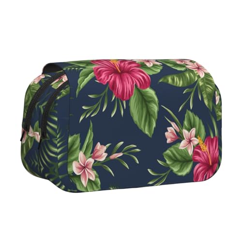 YOFIEN Tropical Flowers Frangipani Hibiscus Pencil Pouch Portable Double Layer Stationery Organizer