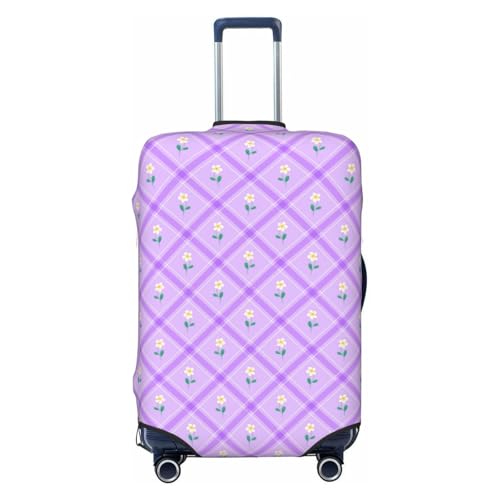 Cute Frangipani Lilac Checkered Travel Luggage Covers - Elasticity Suitcase Covers Protector for Luggage 18-32 Inch