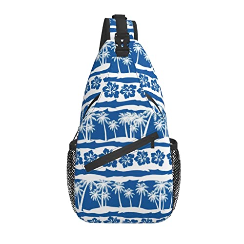 Blue Tropical Frangipani Flowers Palm Crossbody Bag Casual Sling Shoulder Backpack for Men Women Unisex Small Hiking Backpack Durable Hiking Daypack