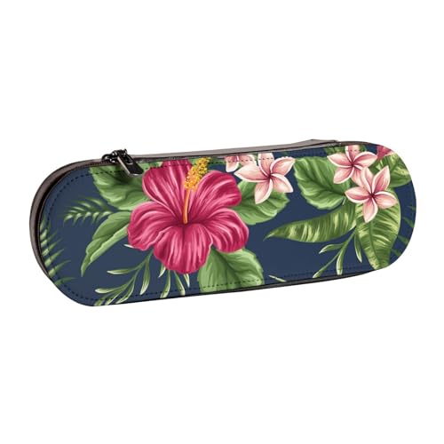 Hnnkloy Leather Pencil Case Organizer for Stationery Storage,Tropical Flowers Frangipani Hibiscus
