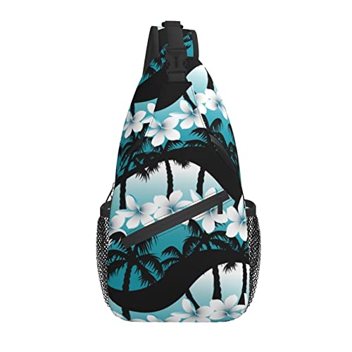 Tropical Frangipani Palms Crossbody Bag Casual Sling Shoulder Backpack for Men Women Unisex Small Hiking Backpack Durable Hiking Daypack