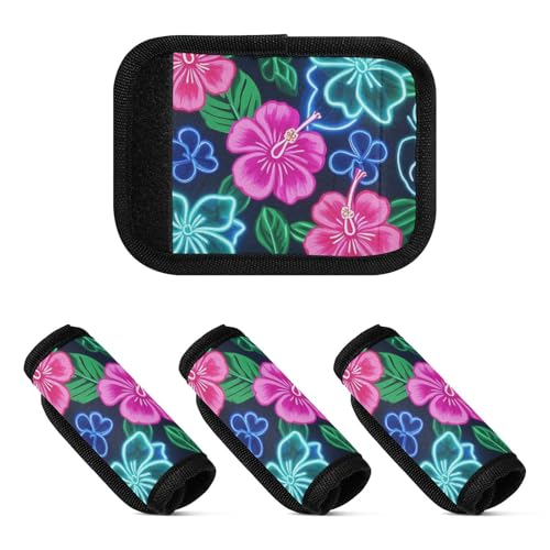 4 Pcs Luggage Handle Wraps Summer Neon Hibiscus Frangipani Flower Neoprene Luggage Accessories for Travel Accessories Bag, Summer neon Hibiscus frangipani flower, 1 sizex4