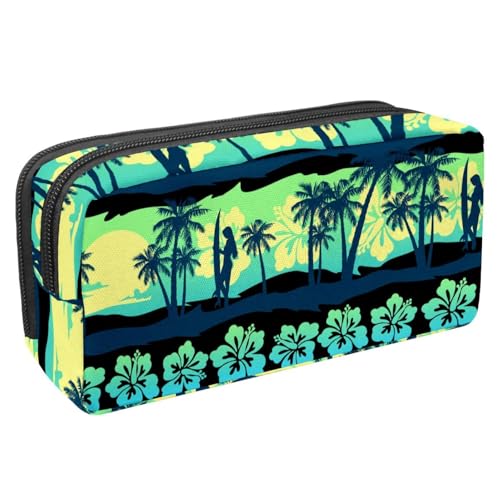 Eslifey Pencil Case, Tropical Frangipani Green Sunrise Hawaii Large Capacity Pencil Pouch Stationery Pen Bag
