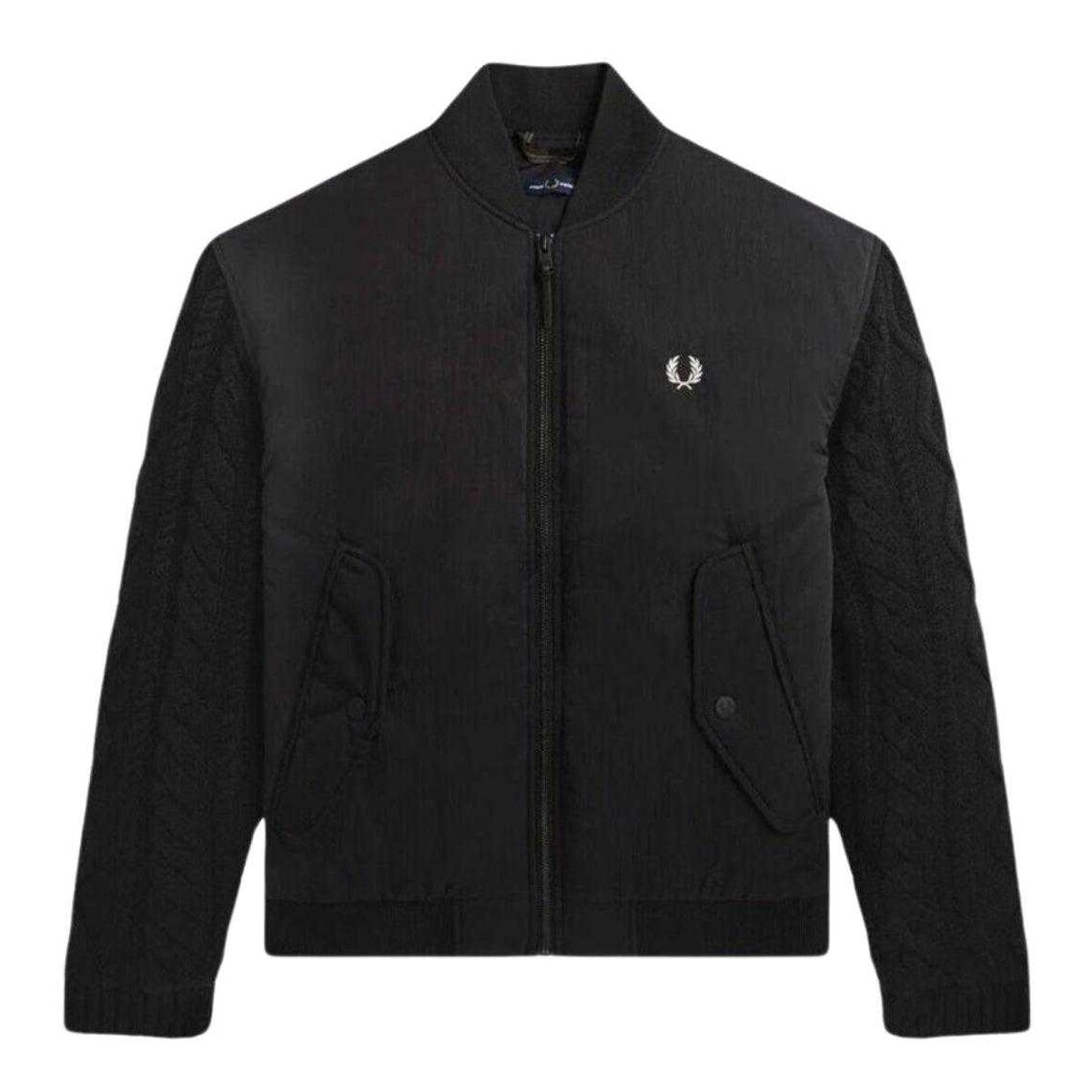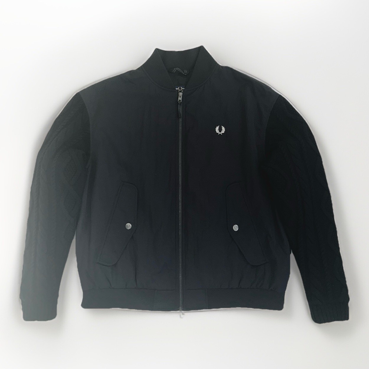 Fred Perry Mens Cable Knit Sleeve Black Bomber Jacket - Size Small