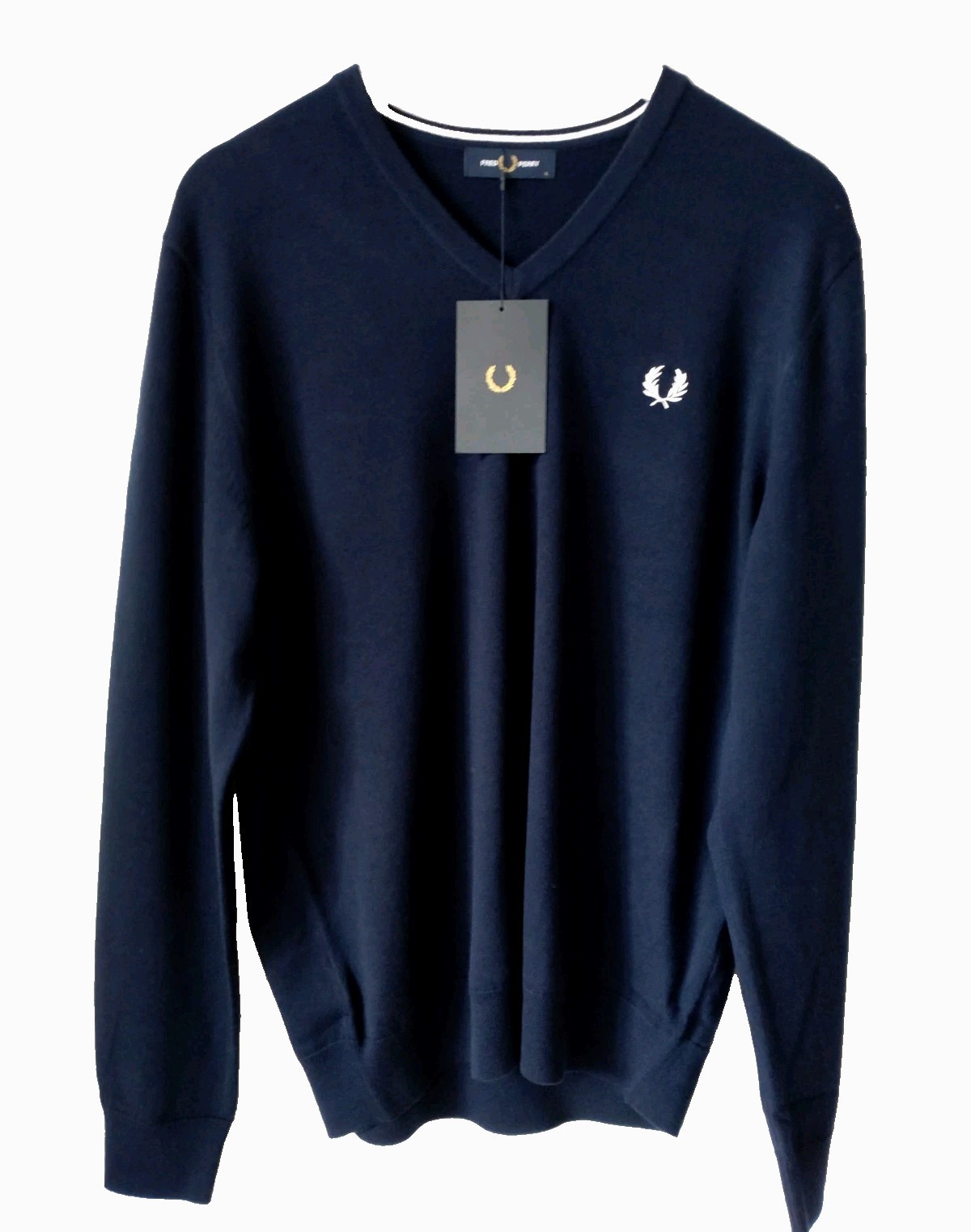 FRED PERRY * BNWT * SIZE L NAVY CLASSIC V-NECK MEN'S JUMPER RRP £130 - FREE P&P