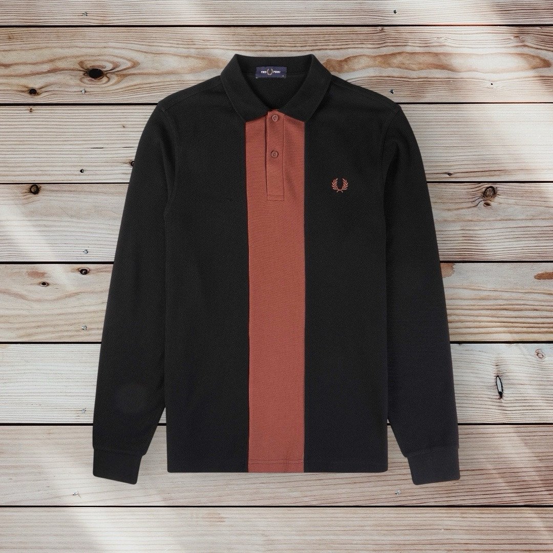Fred Perry Classic Panelled Long Sleeve Polo Shirt M6637 Size Medium Slim Fit