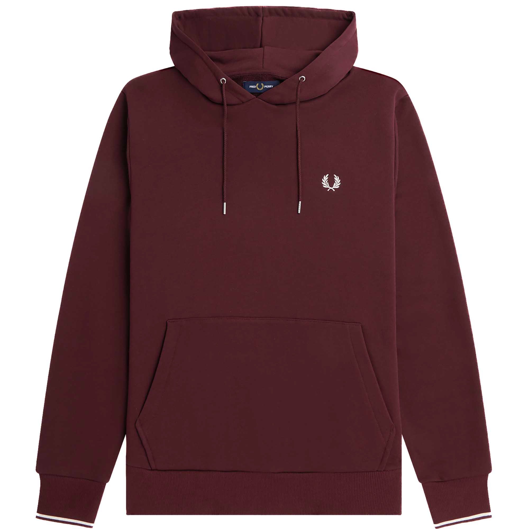 Fred Perry Mens Tipped Hooded Burgundy Sweatshirt - Violet Cotton - Size Small