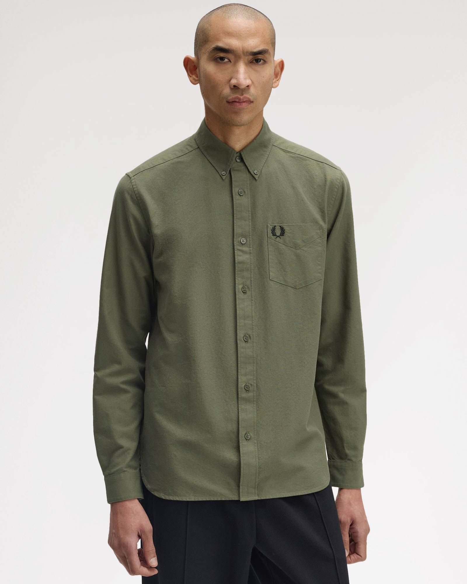 Fred Perry Mens Long Sleeve Oxford Shirt in Dark Green Cotton - Size Medium