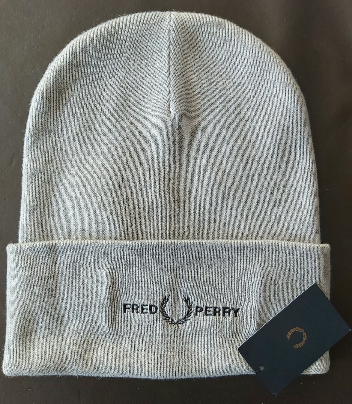 Genuine FRED PERRY Grey / Black 54% MERINO WOOL BEANIE HAT Toque UNISEX C9150