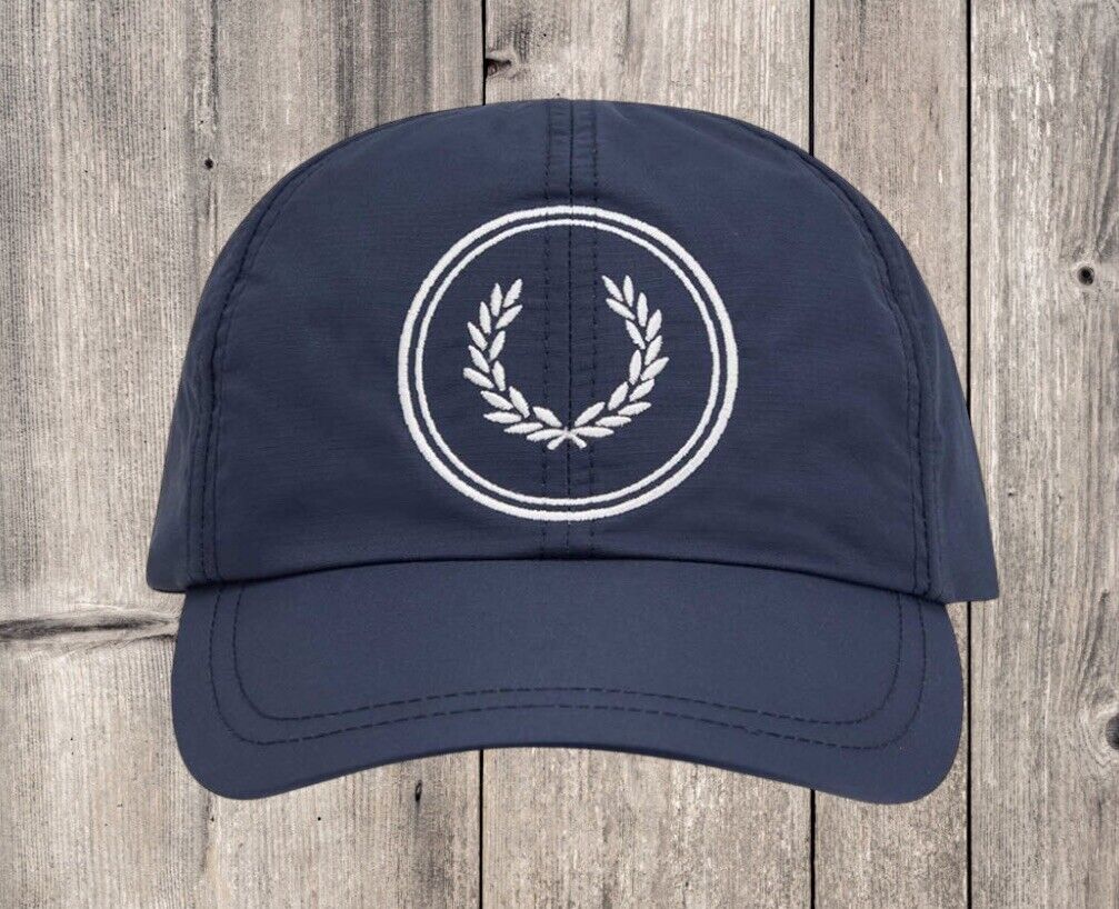 Fred Perry Mens Circle Branded Ripstop Logo Navy Blue Baseball Cap Hat HW5652