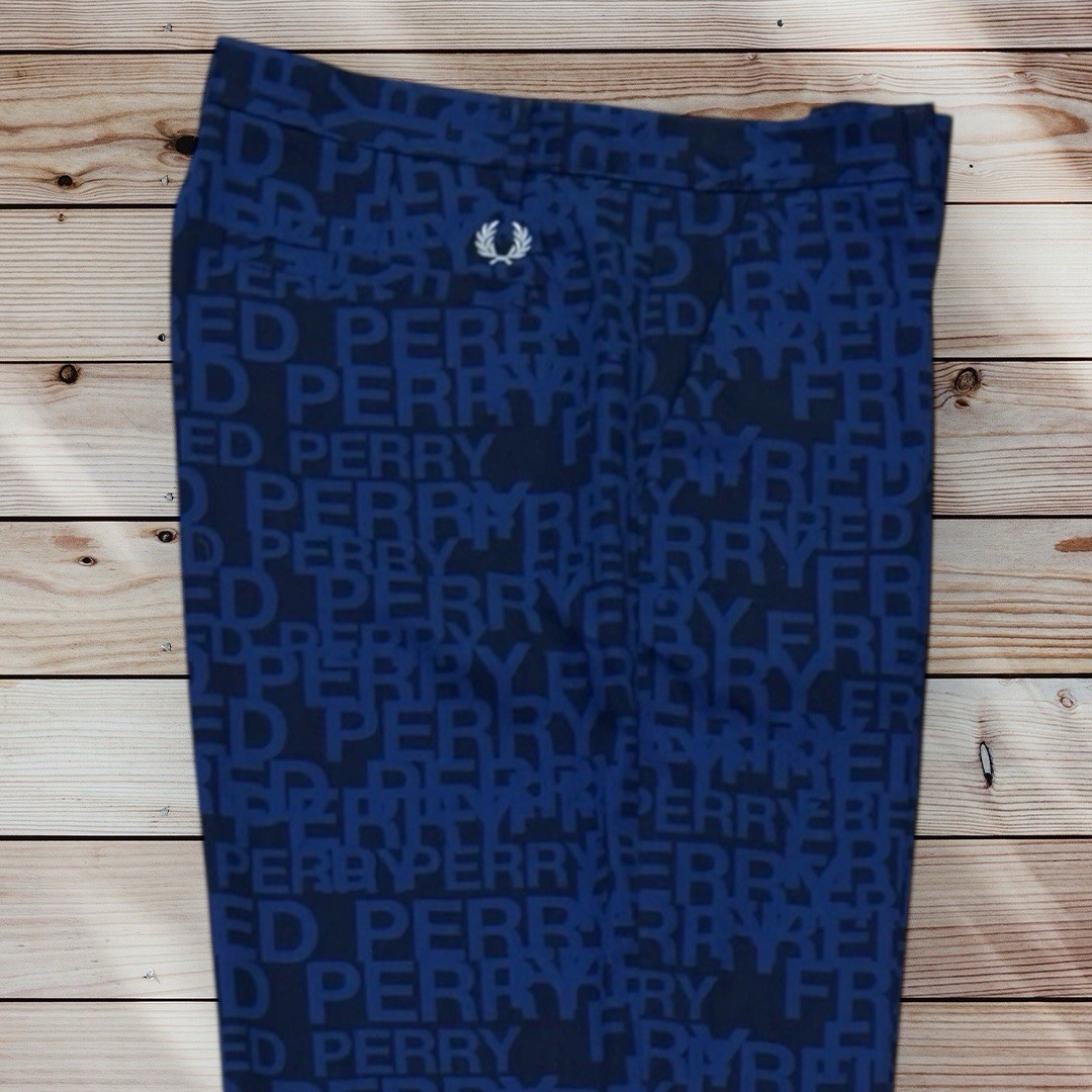 Fred Perry Graphic Text Monogram Trousers Blue Black Shaded Cobalt W30 L30