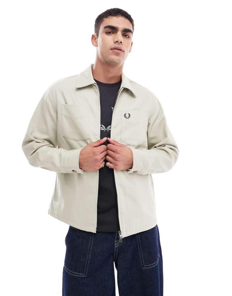 Fred Perry Mens long sleeve twill zip through overshirt in beige - Size X-Small