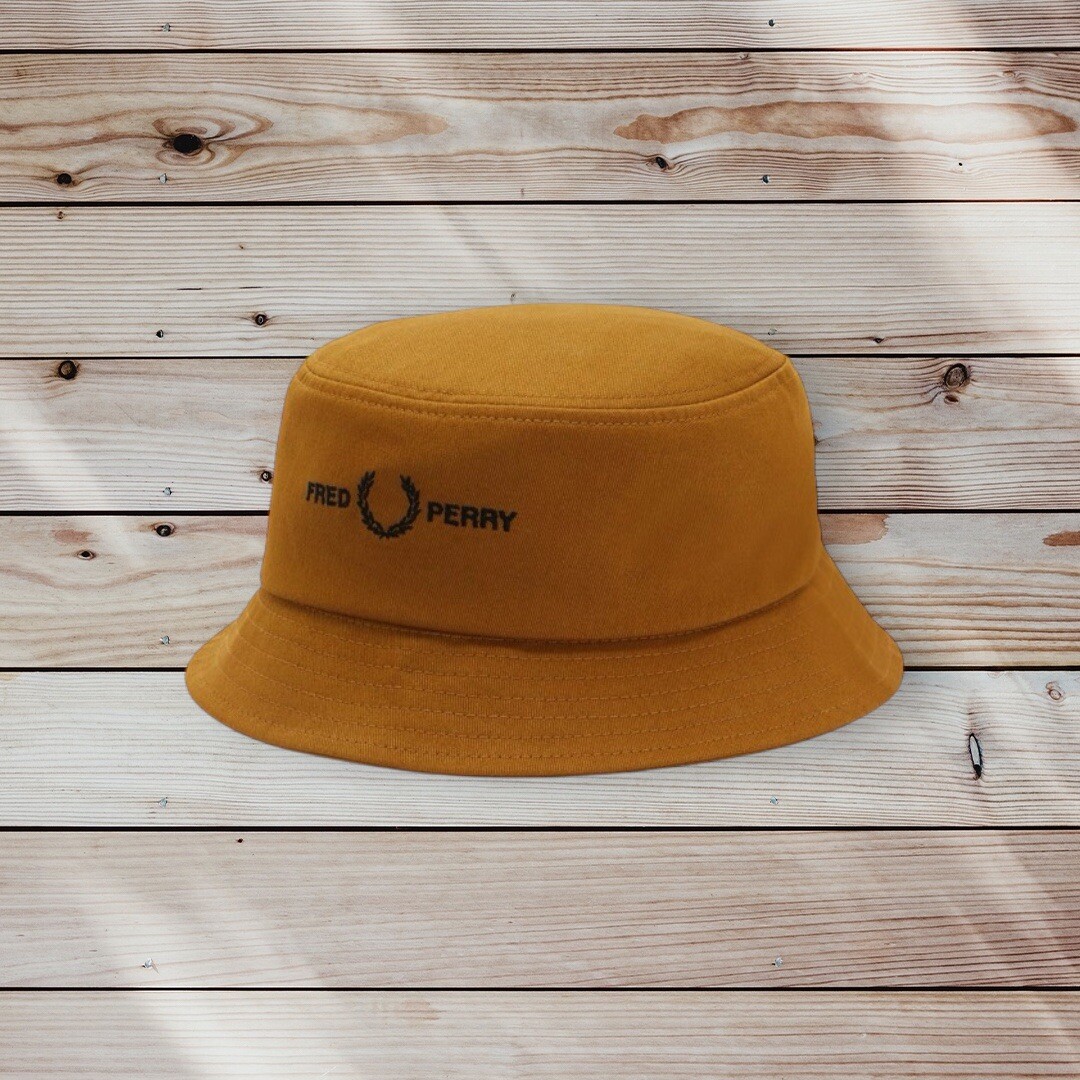 FRED PERRY Camel Brown Hat Logo Twill Fisherman Bucket HAT HW4631 644 Medium