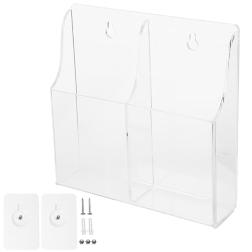 Milisten Wall Mounted Remote Control Holder and Phone Organizer, Acrylic Punch-free Storage Box with 2 Compartments for Home Bedroom Sofa Remote Controllers and Mobile Phones