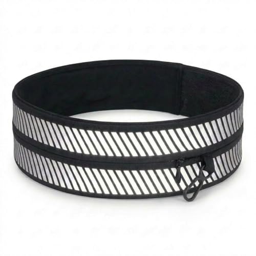 Catali Reflective Running Belt for Men & Women 360° Safety Waist Pack with Zip & Open Pockets, Fits Phones up to 7" Bounce-Free & Buckle-Free Design for Night Runs Gym & Travel