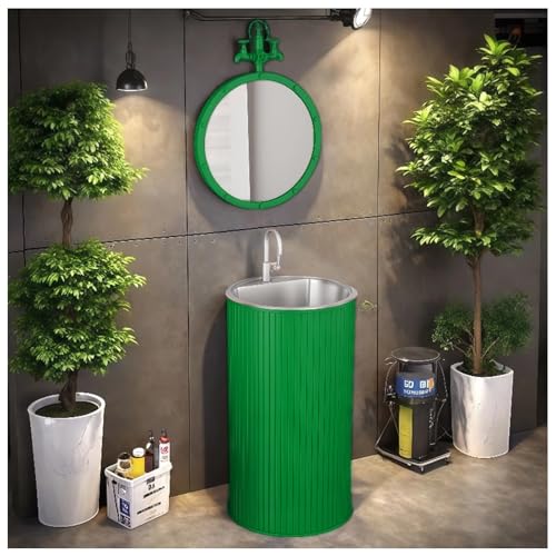 ZTGL Pedestal Bathroom Wash Basin Sink, Floorstanding Pedestal Sink for Bathroom, Industrial Style Vanity Units Sinks, Modern Iron Art Free Standing Wash Basin Vanity Sinks G, Without Mirror