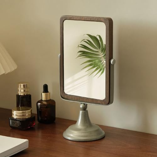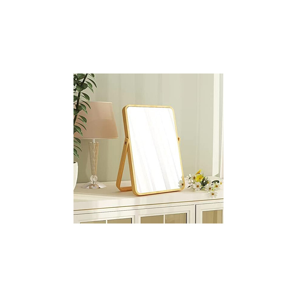 Wooden Desktop Mirror with Stand Vanity Mirror Makeup Mirror Tabletop Mirror with Stand Folding HD Rectangule Free Standing Bathroom Mirror