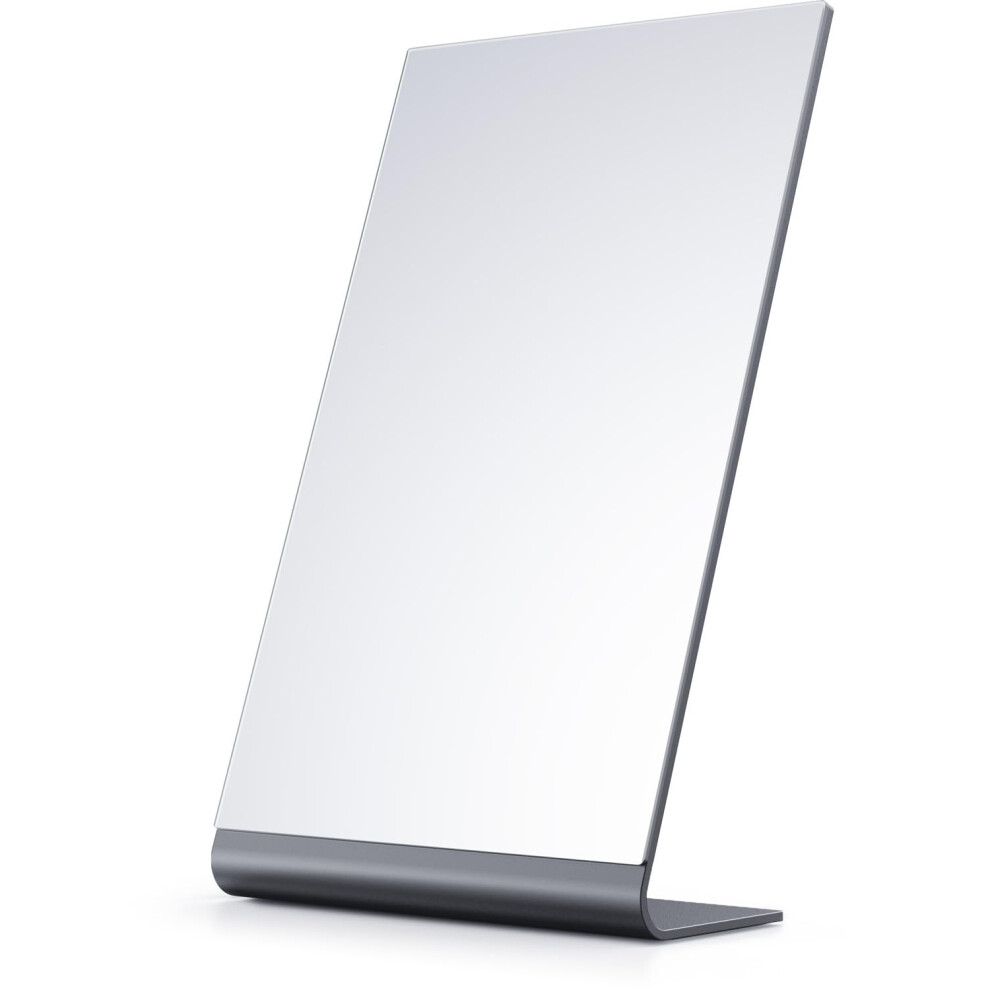 NEZZOE Rectangular Makeup Mirror for Desk, 12 inch Aluminum Free Standing Bathroom Counter Mirror, Space Black