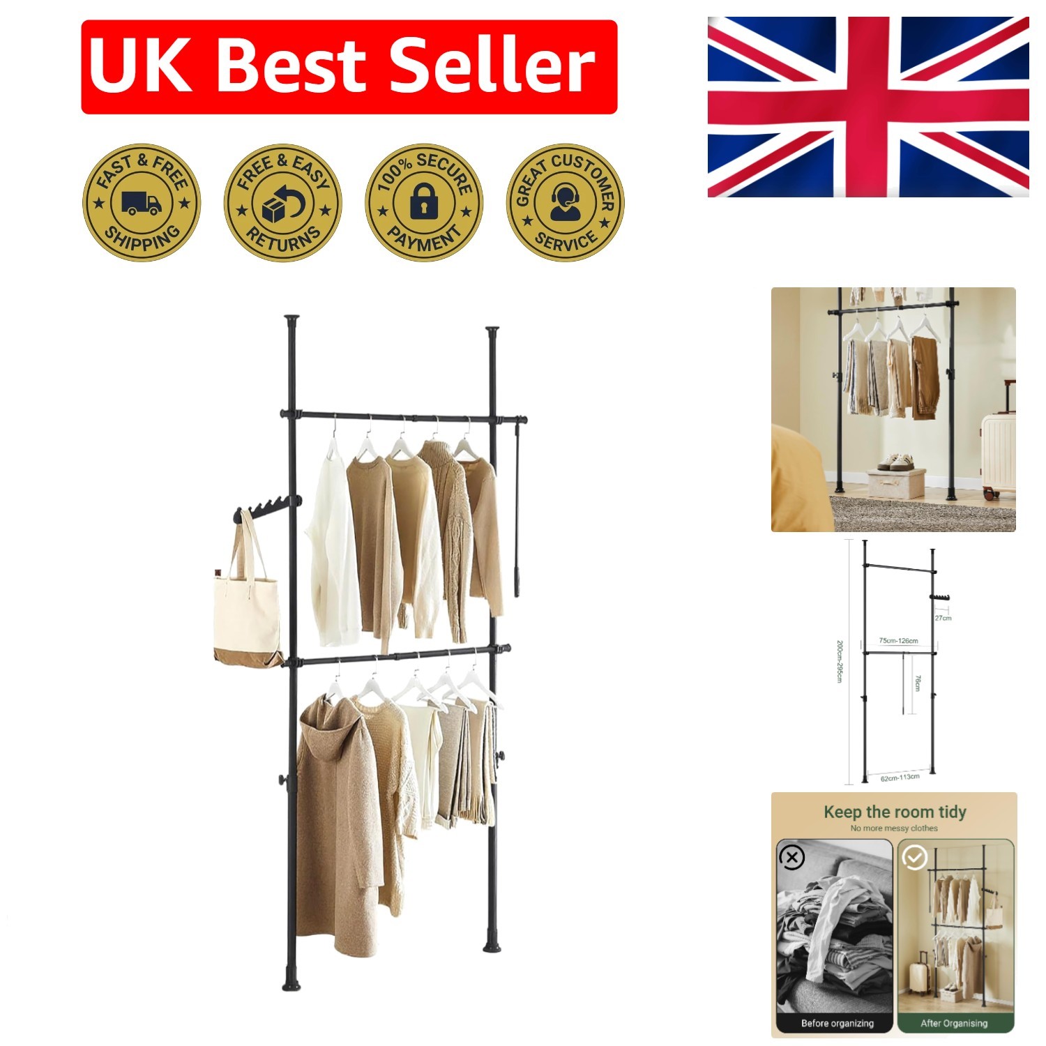 Adjustable Length Free Standing Clothes Rail, Premium Material with Stable Structure, Easy to Assemble for Bedroom, Balcony, Hallway, Closet (Multipur