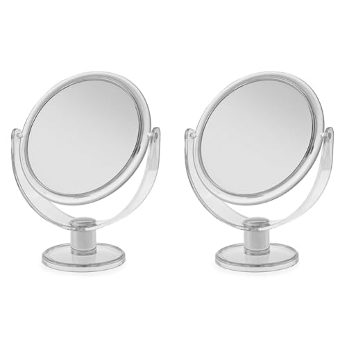 Blue Canyon Free Standing Small Round Plastic Cosmetic Mirror | Magnifying Make Up | Dressing Table Mirror 1X / 2X (Pack of 2)