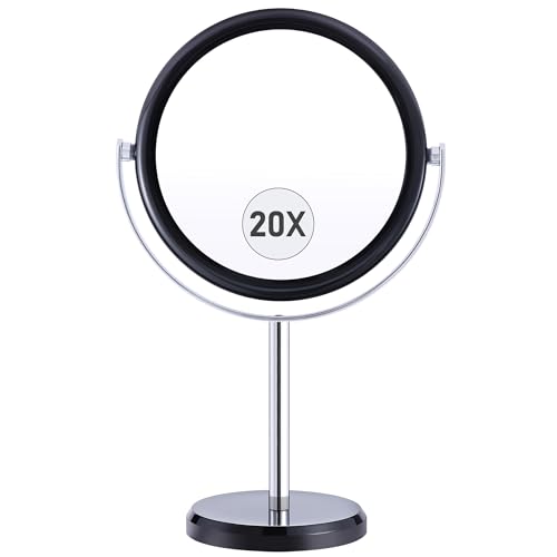 MIYADIVA Free Standing Bathroom Mirror, Double Sided 1X&20X Magnifying Mirror for Dressing Table, 360°Rotation