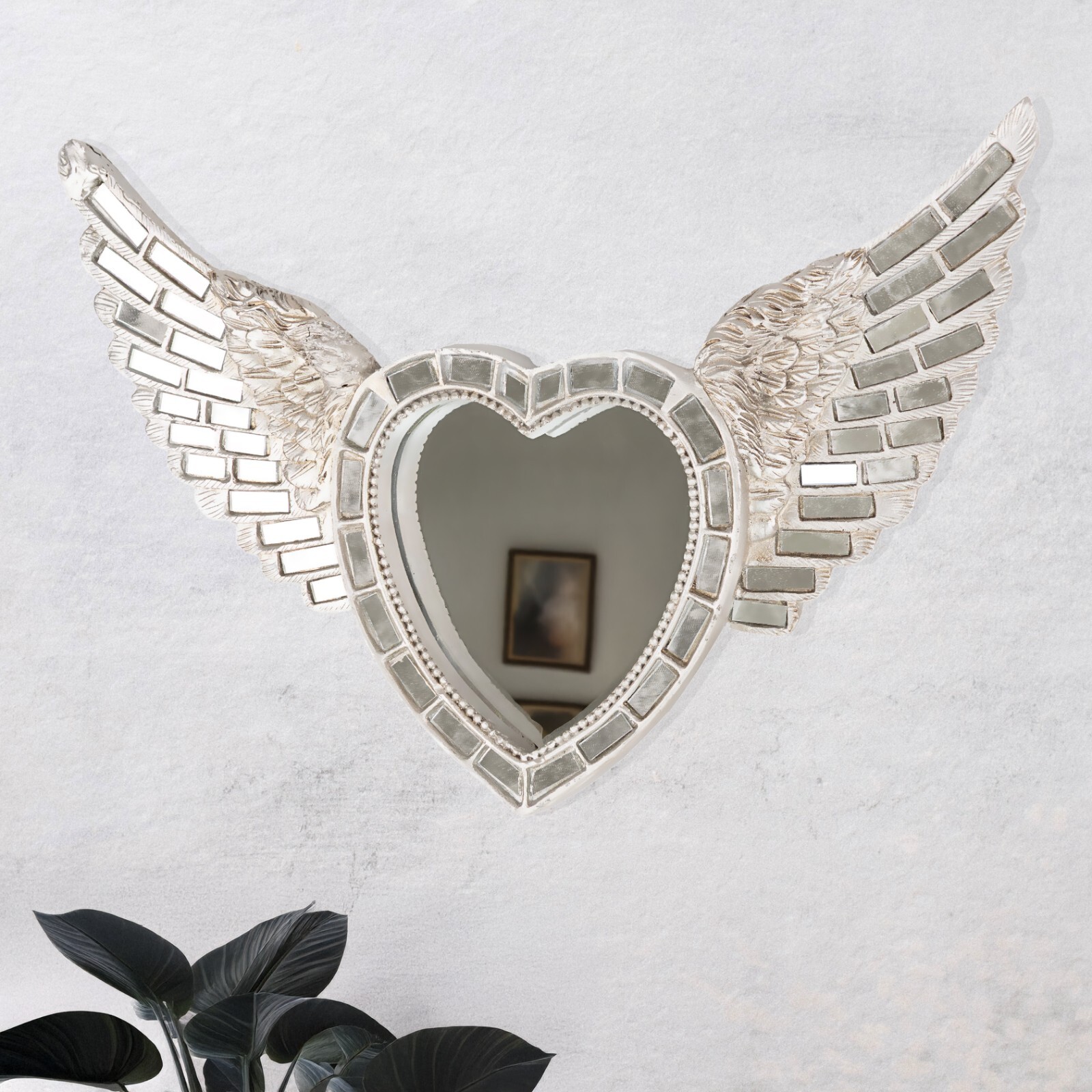 Heart Wings Wall Mirror Silver Hanging Free Standing Dressing Table Vanity