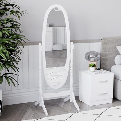Vida Designs Nishano Cheval Mirror Free Standing Full Length Floor Standing Dressing Mirror Adjustable Bedroom Furniture Wooden, White