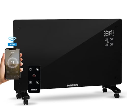 Senelux 2000W Electric Glass Panel Heater, WiFi Smart Convection Heater, with Adjustable 3 Heat Settings Thermostat APP/Remote Control, Energy Efficient Radiator, Wall Mounted or Free Standing, Black