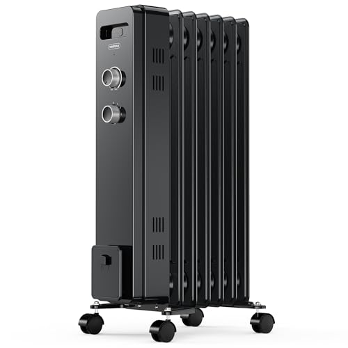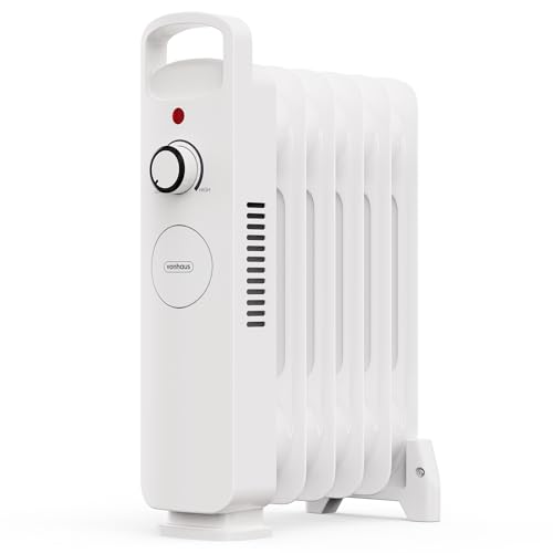 VonHaus Oil Filled Radiator 6 Fin – Oil Heater Portable Electric Free Standing 800W for Home, Office, Any Room – Adjustable Thermostat, Carry Handle, Lightweight, 1.5m Power Cable – 2 Year Warranty