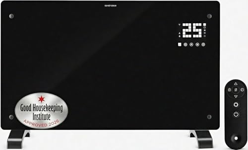 Devola Wifi Enabled Smart Electric Glass Panel Heater 1000W | Alexa Heating Control, Open Window Detection, Wall Mounted & Free Standing Low Energy Heaters with Timer | Lot 20, DVPW1000B (Black)