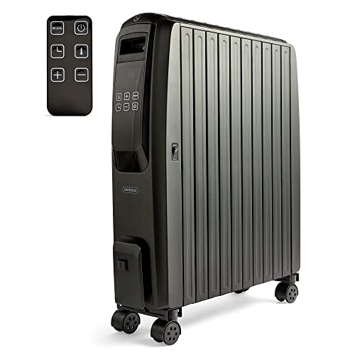 VonHaus Digital Oil Filled Radiator with Remote Control & LED Display – Oil Heater Portable Electric Free Standing 2500W for Home, Office – Adjustable Thermostat, 3 Heat Settings, Wheels, 1.5m Cable