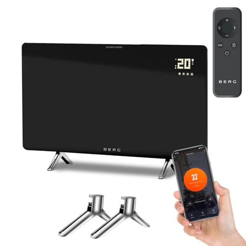 BERG Ultra-Slim Glass Infrared Panel Heater – Smart Electric Heater with Wi-Fi & Remote Control, 12mm Frameless Design, Wall Mounted or Free-Standing, Energy Efficient Room Heating (Black, 720W)