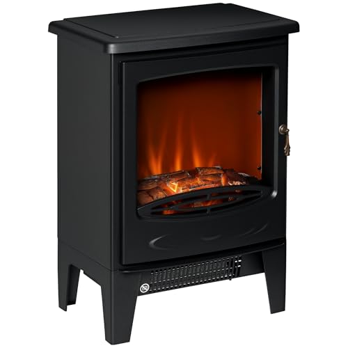 HOMCOM Electric Fireplace Stove, Free standing Fireplace Heater with Realistic Flame Effect, Adjustable Temperature and Overheat Protection, Black