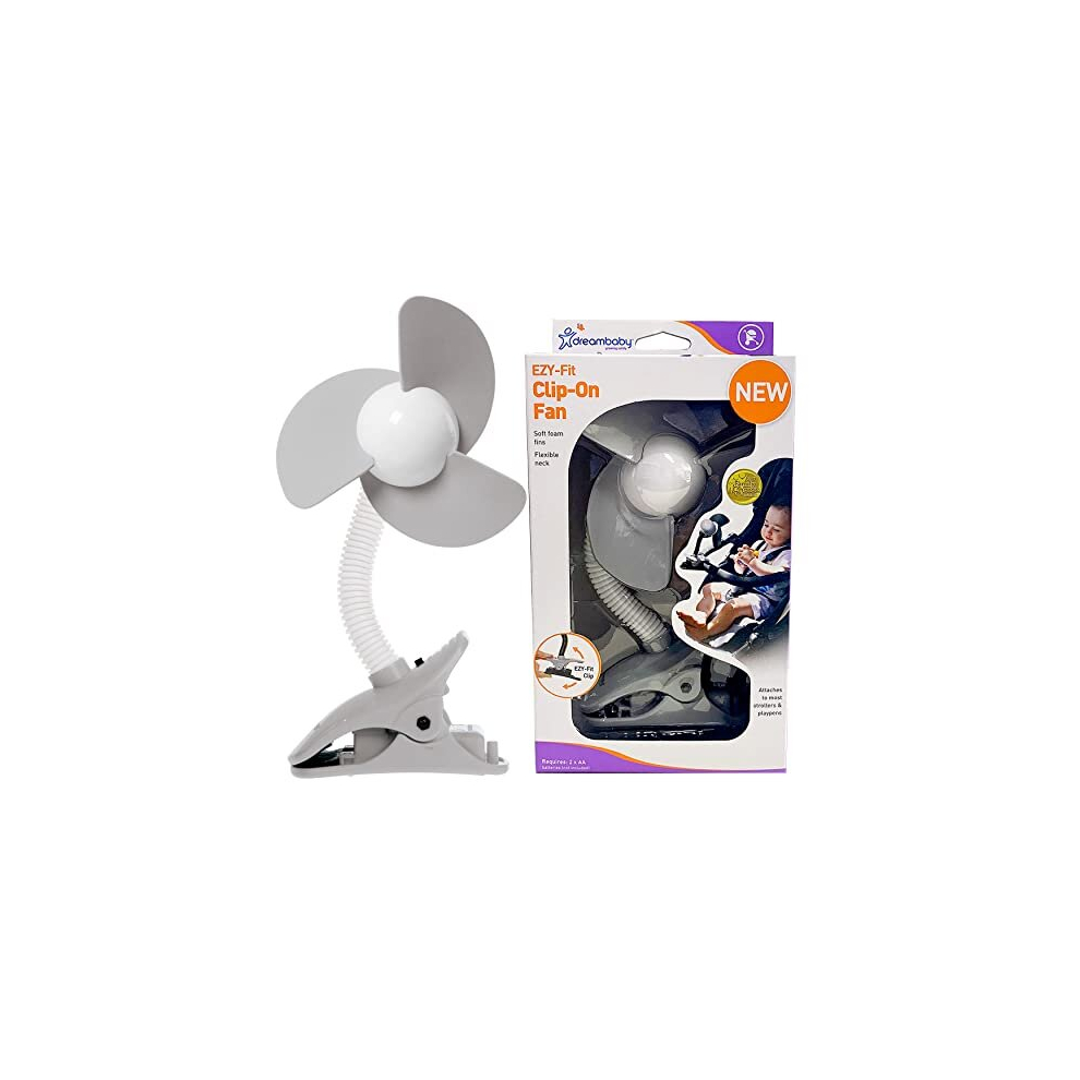 Stroller Fan Soft Plastic Fin and Free Standing Adjustable Clip-On Fan | Foldable and Portable Strollerbuddy Fan with Flexible Neck - White and Grey