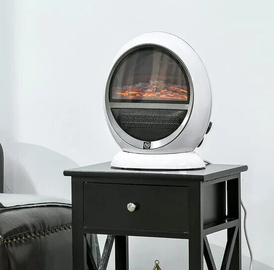 Electric Fire Home Heater Fan White Ceramic Free Standing Flame Effect 1500W